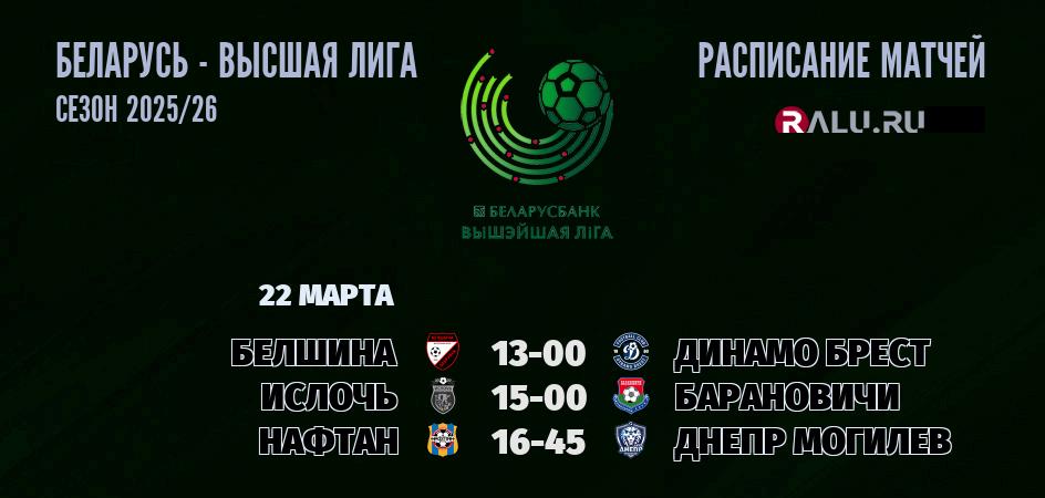22 марта 2026 года состоятся три матча в рамках Высшей лиги Беларуси