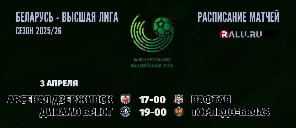 3 апреля 2026 года пройдут две встречи в рамках Высшей лиги Беларуси