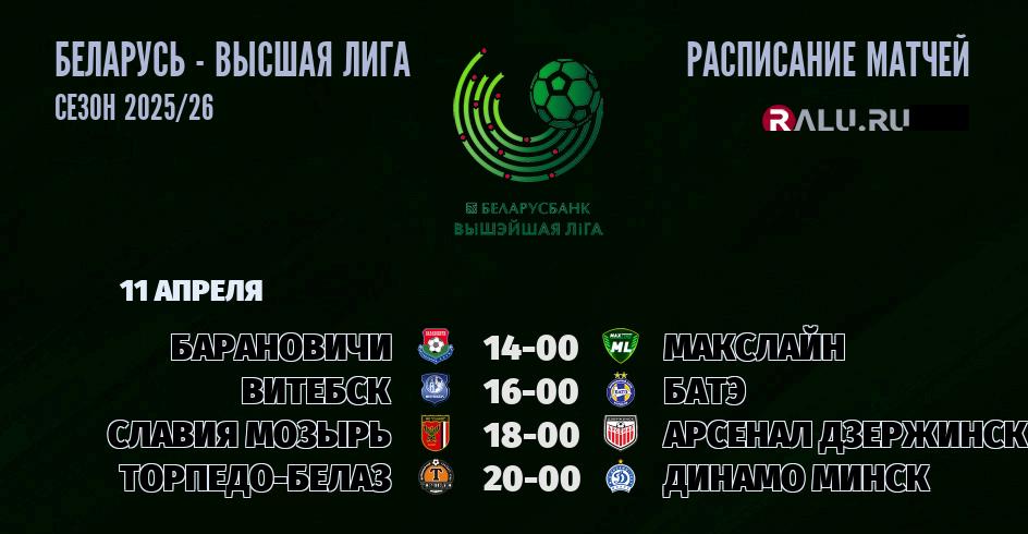 11 апреля 2026 года состоятся четыре матча в рамках Высшей лиги Беларуси