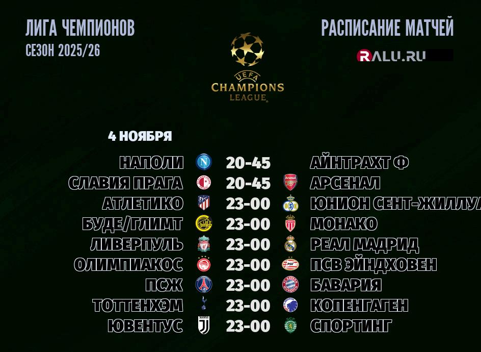 Главная / Лига чемпионов / Матчи Лиги Чемпионов смотреть онлайн 23 октября 2025