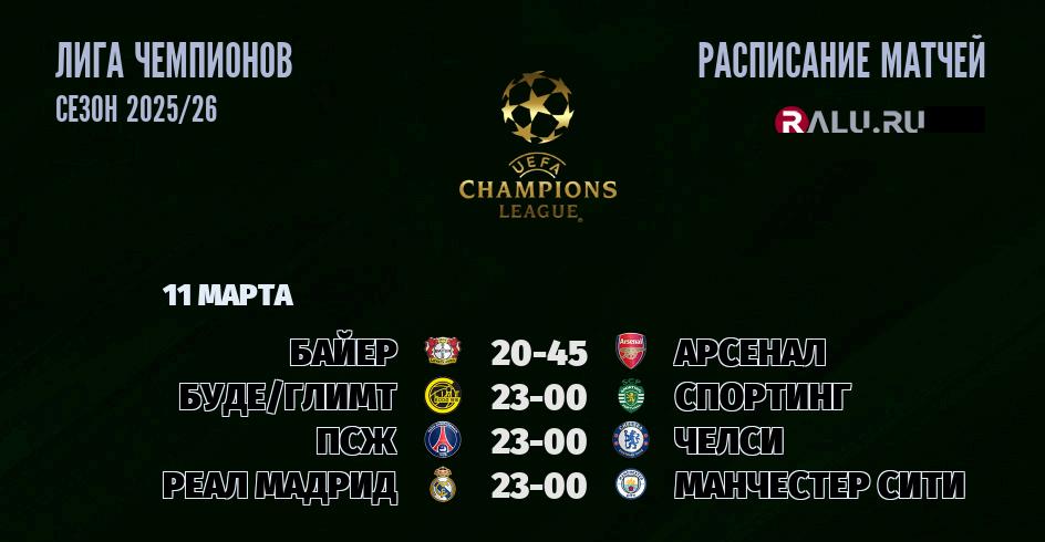 11 марта 2026 года состоятся четыре матча в рамках Лиги Чемпионов