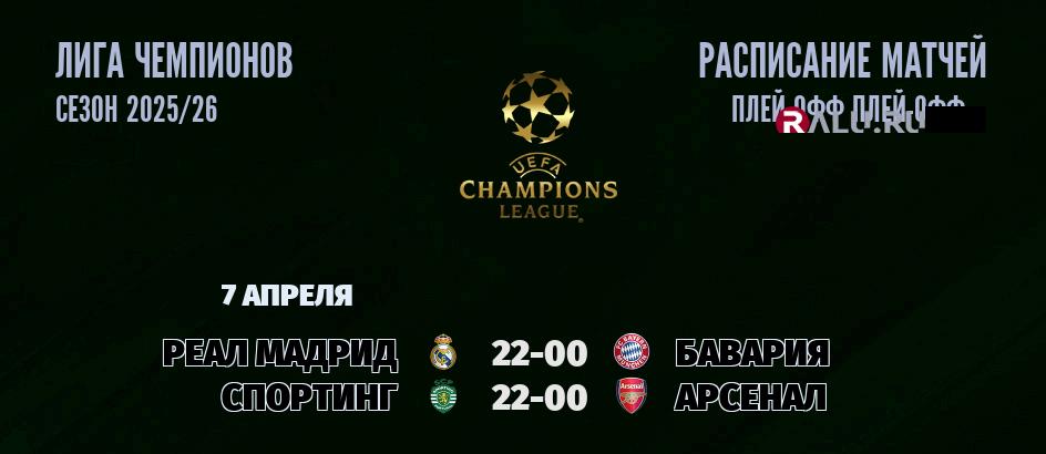 7 апреля 2026 года пройдут две встречи в рамках Лиги Чемпионов