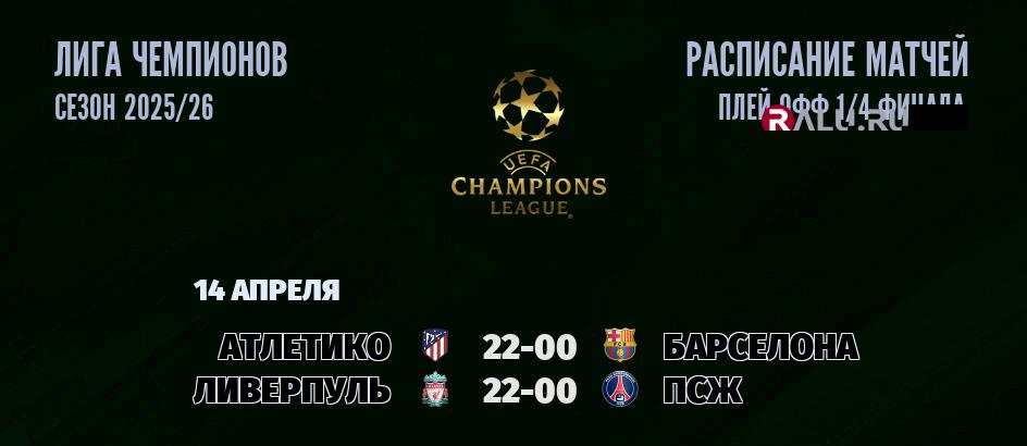 14 апреля 2026 года пройдут две встречи в рамках Лиги Чемпионов