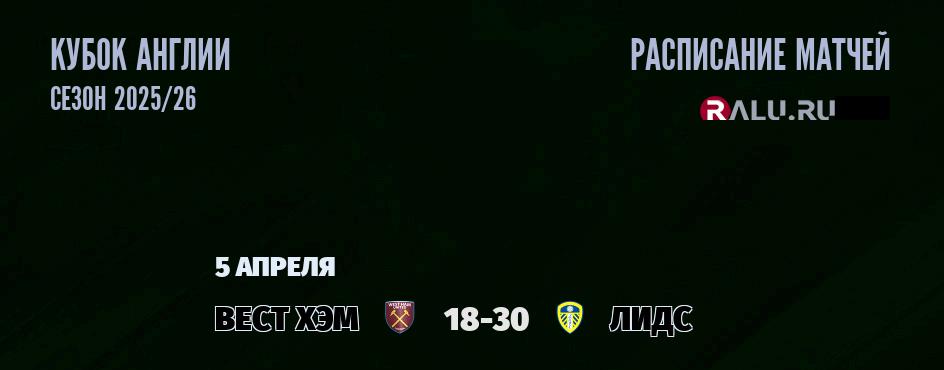 В 18-30 «Вест Хэм» встречается с футбольным клубом «Лидс». В прошлой встрече между командой Лидс и командой Вест Хэм, которая состоялась 24 октября 2025 года - победу со счетом 2:1 одержала команда Лидс. В турнирной таблице Кубка Англии Вест Хэм занимает 1-е место, а Лидс занимает 1-е место .