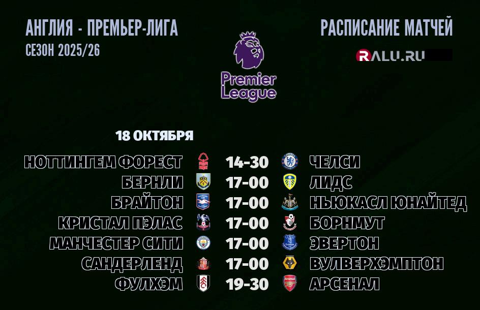 Главная / Англия - Премьер-лига / Матчи Премьер лиги Англии смотреть онлайн 15 октября 2025