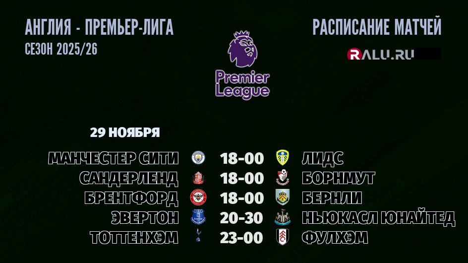29 ноября 2025 года пройдут пять хоккейных поединков в рамках Премьер лиги Англии