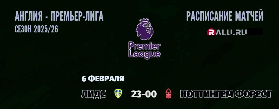 В 23-00 ФК «Лидс» проведет матч с клубом «Ноттингем Форест». В прошлой встрече между командой Ноттингем Форест и командой Лидс, которая состоялась 9 ноября 2025 года - победу со счетом 3:1 одержала команда Ноттингем Форест. На 5 февраля в турнирной таблице Премьер лиги Англии Лидс занимает 66-е место, а Ноттингем Форест занимает 17-е место .