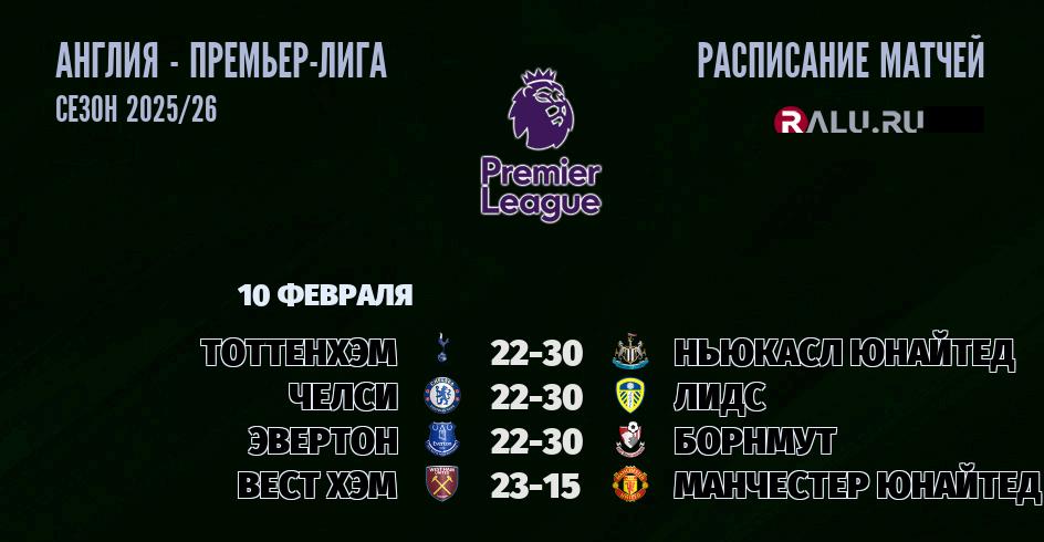 10 февраля 2026 года состоятся четыре матча в рамках Премьер лиги Англии