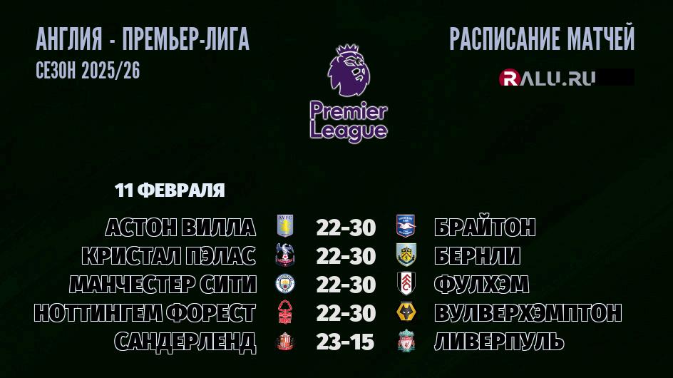 11 февраля 2026 года пройдут пять хоккейных поединков в рамках Премьер лиги Англии