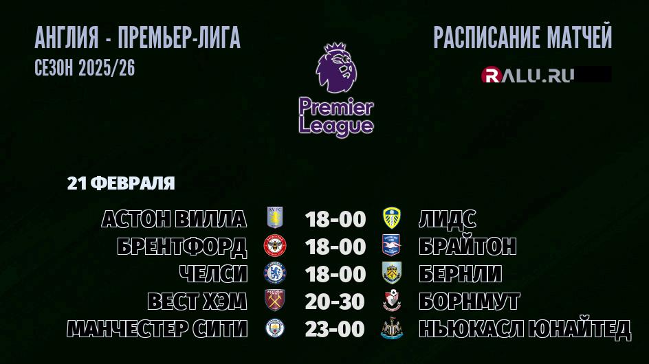 21 февраля 2026 года пройдут пять хоккейных поединков в рамках Премьер лиги Англии