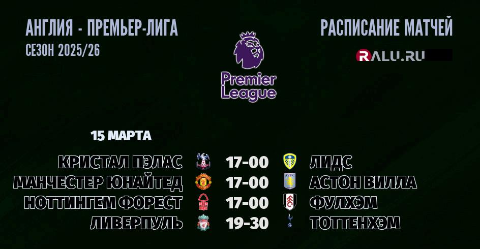 15 марта 2026 года состоятся четыре матча в рамках Премьер лиги Англии