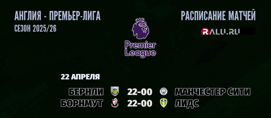 22 апреля 2026 года пройдут две встречи в рамках Премьер лиги Англии