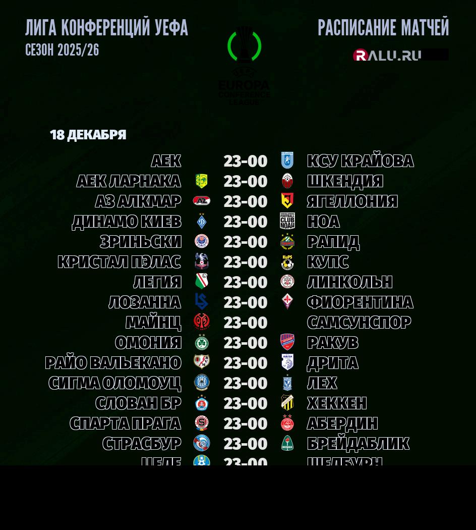 16 декабря 2025 года матчи Лига конференций УЕФА не запланированы
