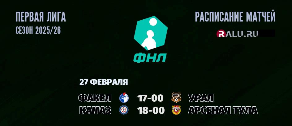 27 февраля 2026 года пройдут две встречи в рамках Первой лиги