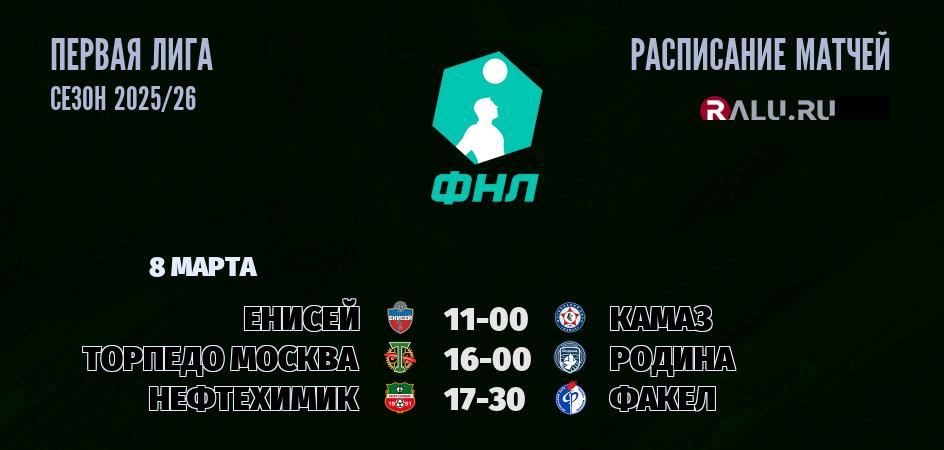 8 марта 2026 года состоятся три матча в рамках Первой лиги