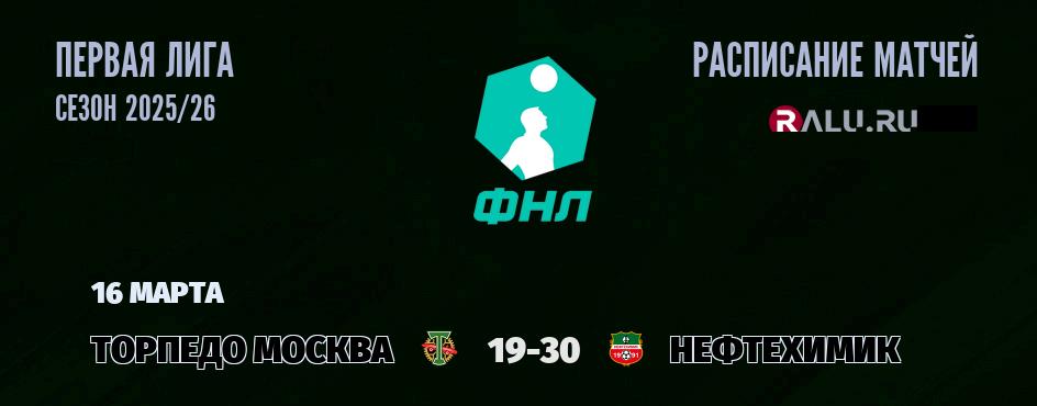 В 19-30 «Торпедо Москва» проведет домашний матч с ФК «Нефтехимик». В прошлой встрече между командой Нефтехимик и командой Торпедо Москва, которая состоялась 27 июля 2025 года - результат оказался ничейным, счет матча 0:0. На 15 марта в турнирной таблице Первой лиги Торпедо Москва занимает 2-е место, а Нефтехимик занимает 15-е место .