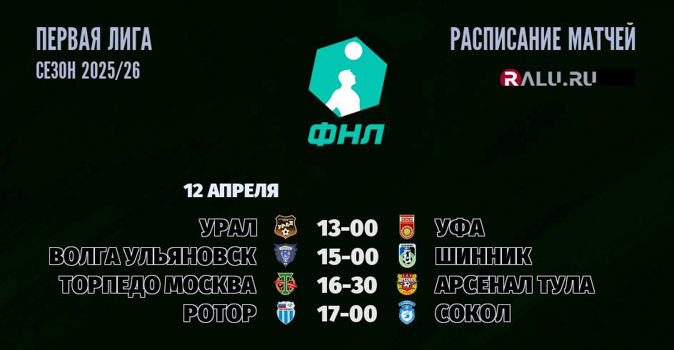 12 апреля 2026 года состоятся четыре матча в рамках Первой лиги