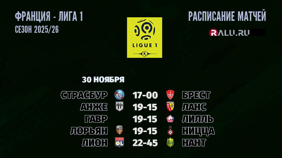 1 декабря нет матчей Франция - Лига 1, ближайшие матчи состоятся 5 апреля: