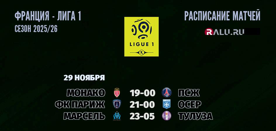 29 ноября 2025 года состоятся три матча в рамках Лиги 1 чемпионата Франция