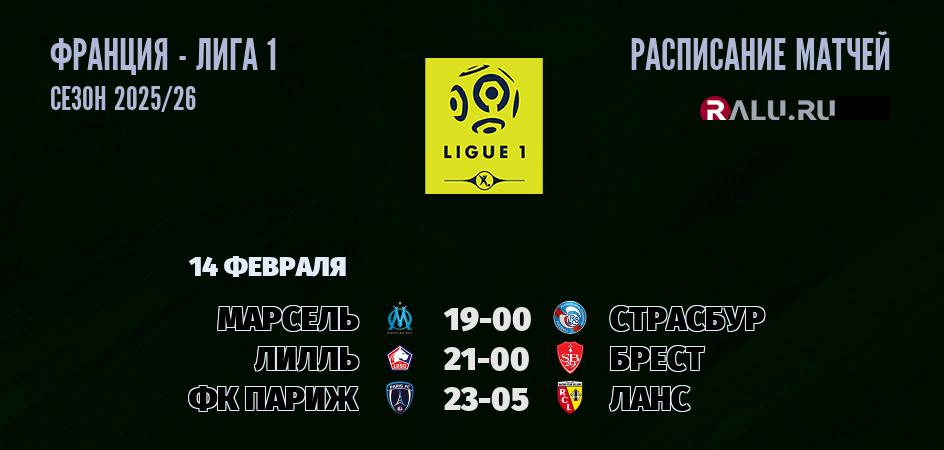 14 февраля 2026 года состоятся три матча в рамках Лиги 1 чемпионата Франция
