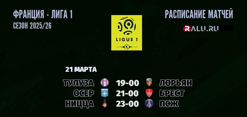 21 марта 2026 года состоятся три матча в рамках Лиги 1 чемпионата Франция