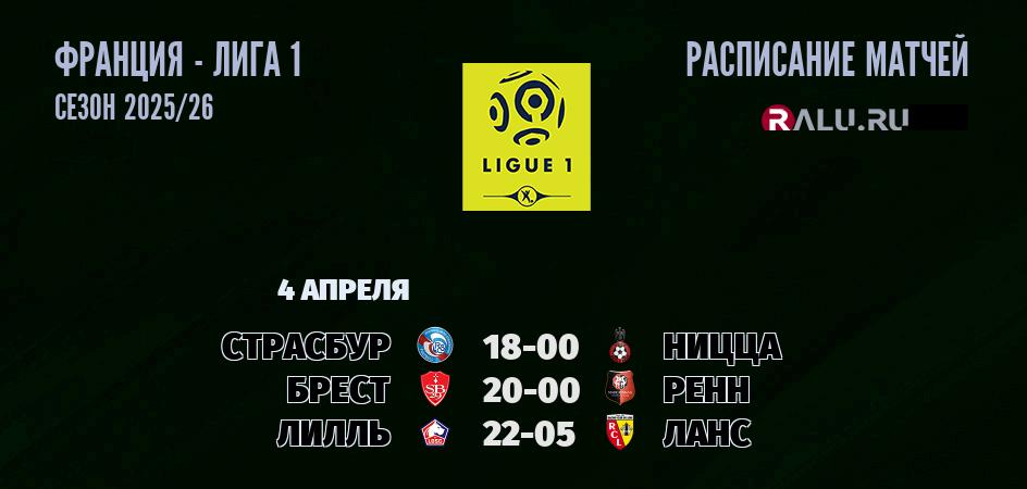 4 апреля 2026 года состоятся три матча в рамках Лиги 1 чемпионата Франция