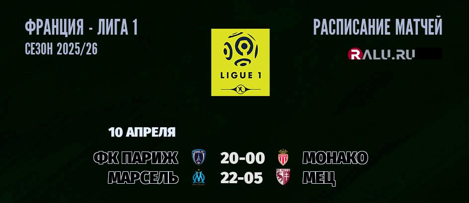 10 апреля 2026 года пройдут две встречи в рамках Лиги 1 чемпионата Франция