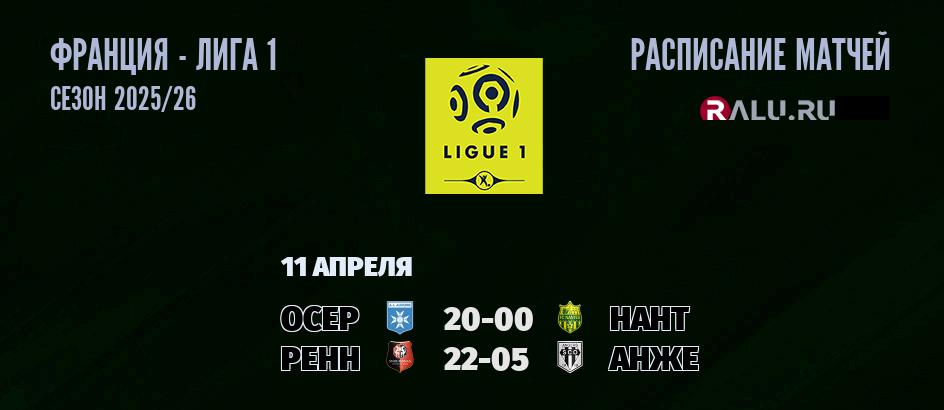 11 апреля 2026 года пройдут две встречи в рамках Лиги 1 чемпионата Франция
