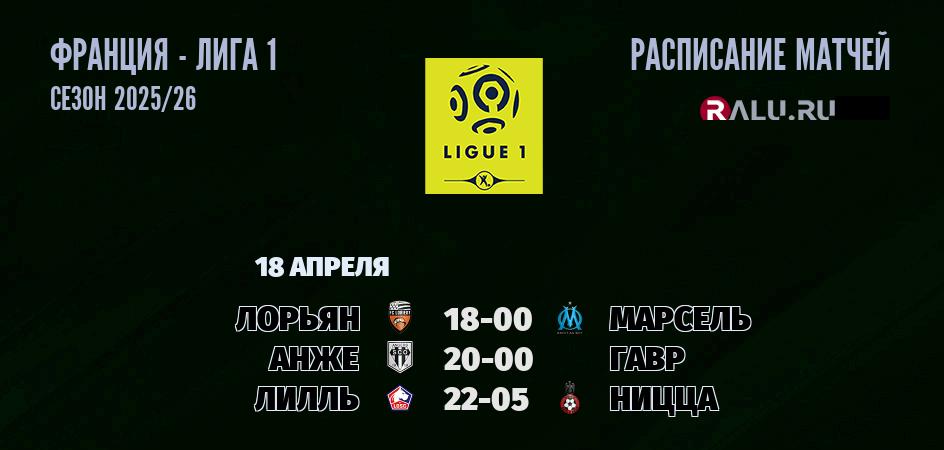 18 апреля 2026 года состоятся три матча в рамках Лиги 1 чемпионата Франция