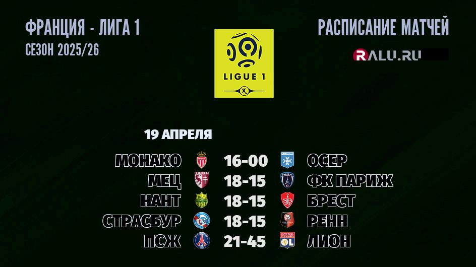В 21-45 «ПСЖ» на домашнем поле принимает команду «Лион». В прошлой встрече между командой Лион и командой ПСЖ, которая состоялась 9 ноября 2025 года - победу со счетом 3:2 одержала команда ПСЖ. На 18 апреля в турнирной таблице Лиги 1 чемпионата Франция ПСЖ занимает 1-е место, а Лион занимает 18-е место .