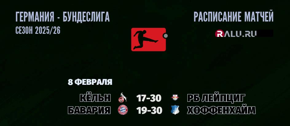 8 февраля 2026 года пройдут две встречи в рамках Бундеслиги Германии