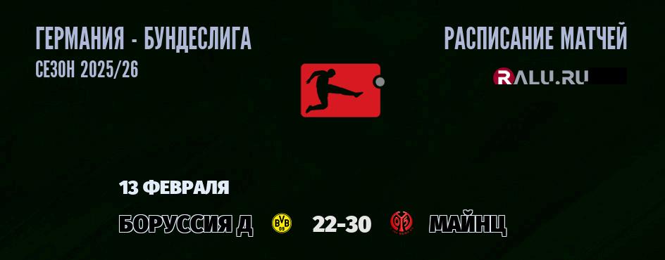 В 22-30 футбольный клуб «Боруссия Д» проведет домашний матч с ФК «Майнц». В прошлой встрече между командой Майнц и командой Боруссия Д, которая состоялась 27 сентября 2025 года - победу со счетом 2:0 одержала команда Боруссия Д. На 12 февраля в турнирной таблице Бундеслиги Германии Боруссия Д занимает 5-е место, а Майнц занимает 18-е место .