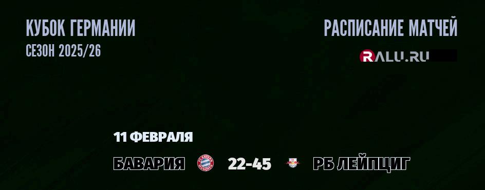 В 22-45 футбольный клуб «Бавария» встречается с футбольным клубом «РБ Лейпциг». В прошлой встрече между командой РБ Лейпциг и командой Бавария, которая состоялась 17 января 2026 года - победу со счетом 5:1 одержала команда Бавария. На сегодняшний день в турнирной таблице Кубка Германии Бавария занимает 1-е место, а РБ Лейпциг занимает 1-е место .