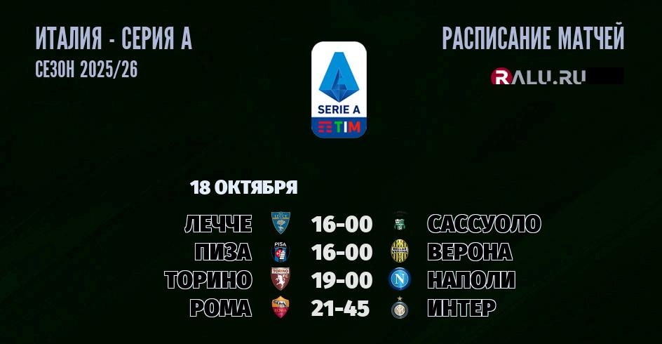 Главная / Италия - Серия А / Матчи Серии А чемпионата Италии смотреть онлайн 15 октября 2025