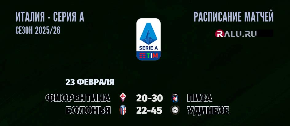 23 февраля 2026 года пройдут две встречи в рамках Серии А чемпионата Италии