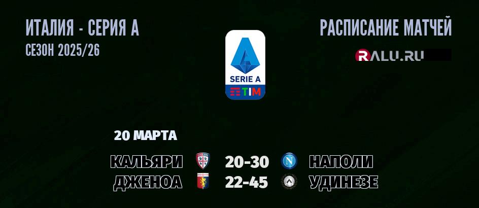 20 марта 2026 года пройдут две встречи в рамках Серии А чемпионата Италии
