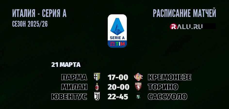 21 марта 2026 года состоятся три матча в рамках Серии А чемпионата Италии