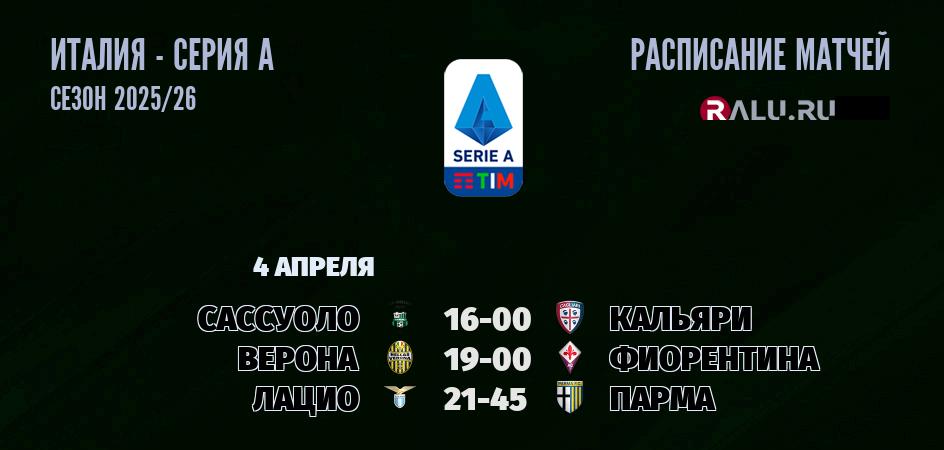 4 апреля 2026 года состоятся три матча в рамках Серии А чемпионата Италии