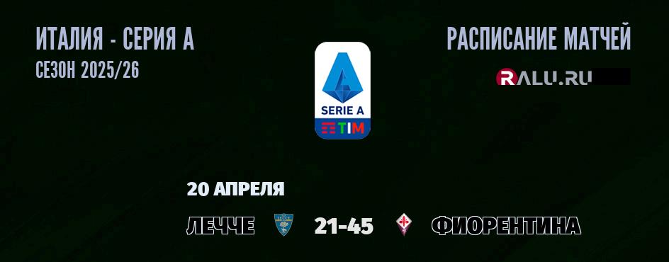 Главная / Италия - Серия А / Матчи Серии А чемпионата Италии смотреть онлайн 20 апреля 2026