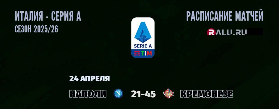 24 апреля 2026 года состоится одна игра в рамках Серии А чемпионата Италии