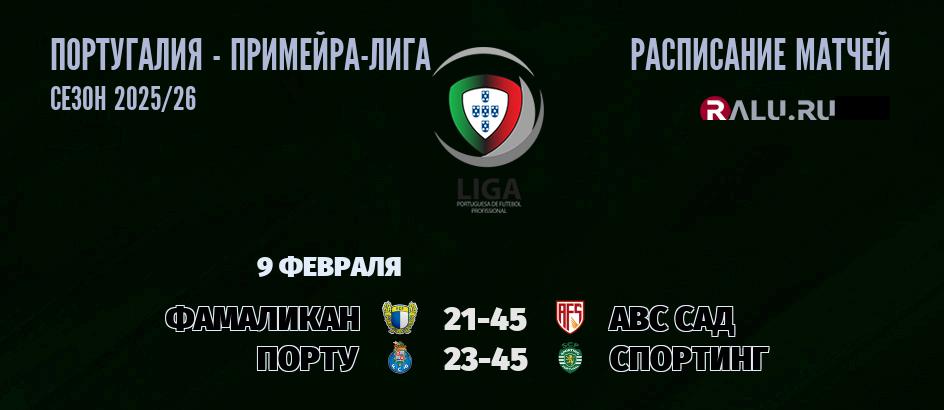 9 февраля 2026 года пройдут две встречи в рамках Примейра-лиги Португалии