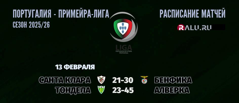 13 февраля 2026 года пройдут две встречи в рамках Примейра-лиги Португалии
