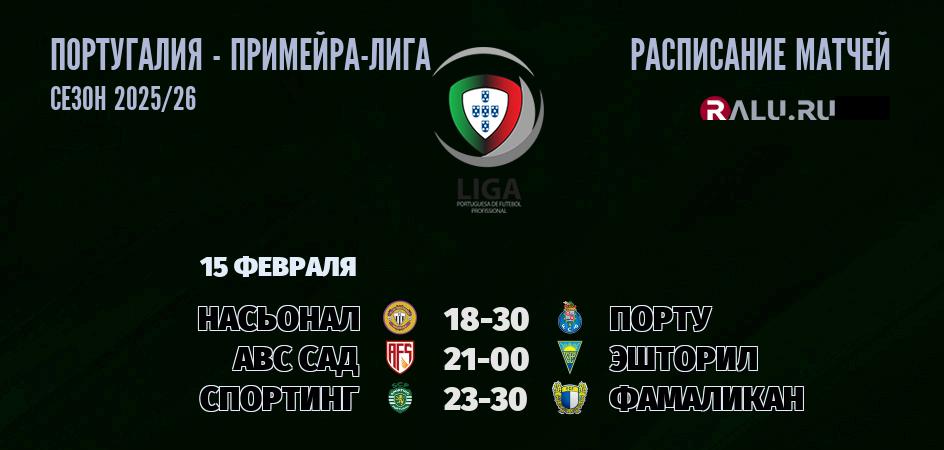 15 февраля 2026 года состоятся три матча в рамках Примейра-лиги Португалии