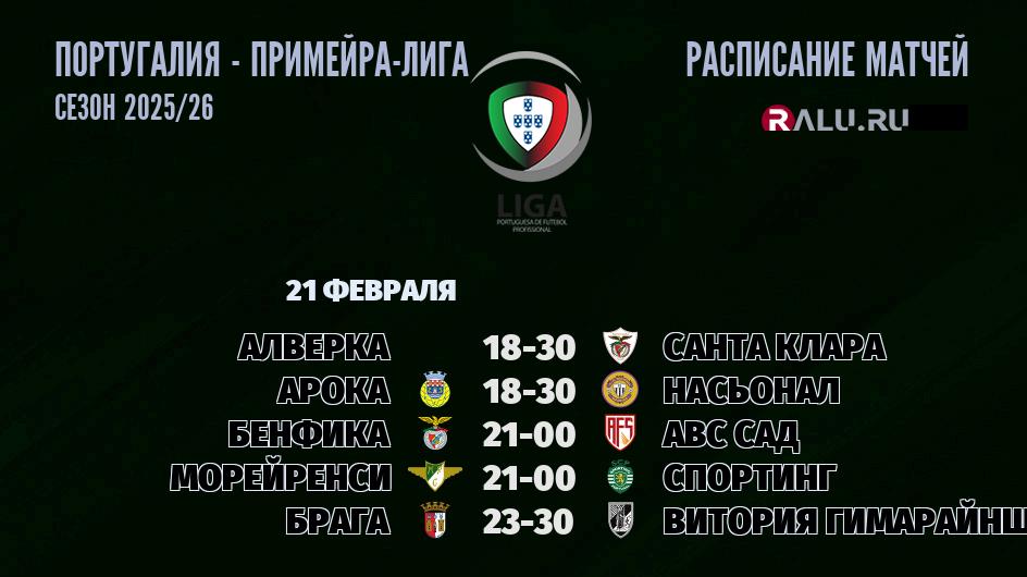 21 февраля 2026 года пройдут пять хоккейных поединков в рамках Примейра-лиги Португалии