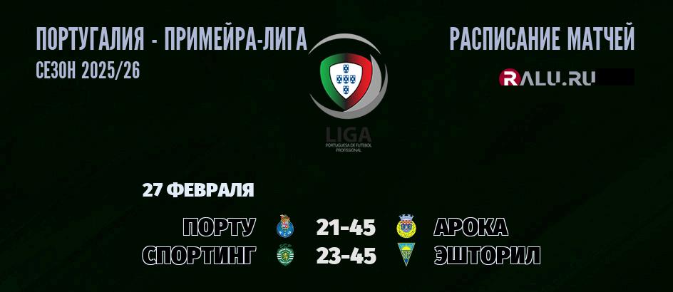27 февраля 2026 года пройдут две встречи в рамках Примейра-лиги Португалии