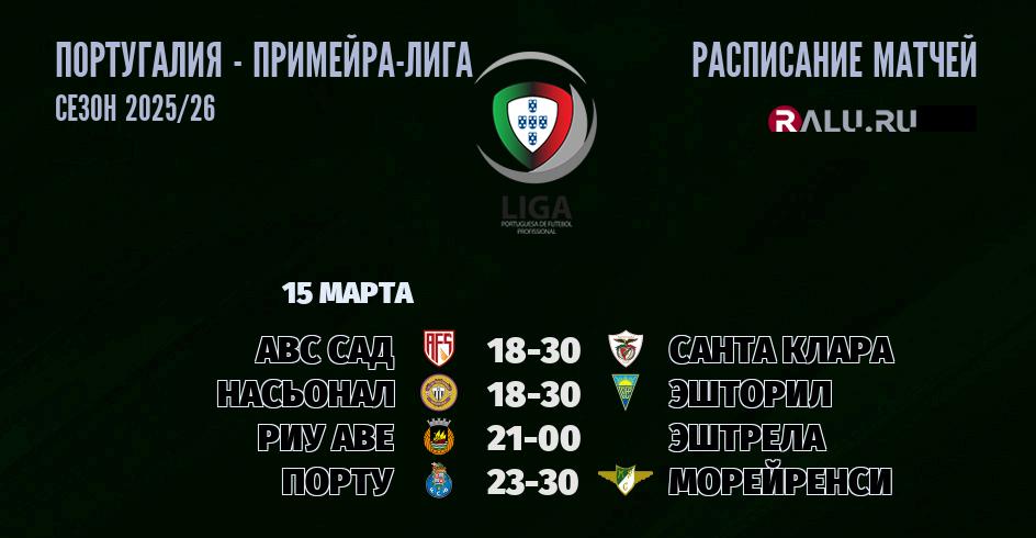 15 марта 2026 года состоятся четыре матча в рамках Примейра-лиги Португалии