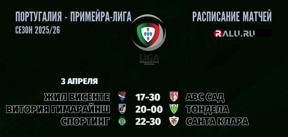 3 апреля 2026 года состоятся три матча в рамках Примейра-лиги Португалии