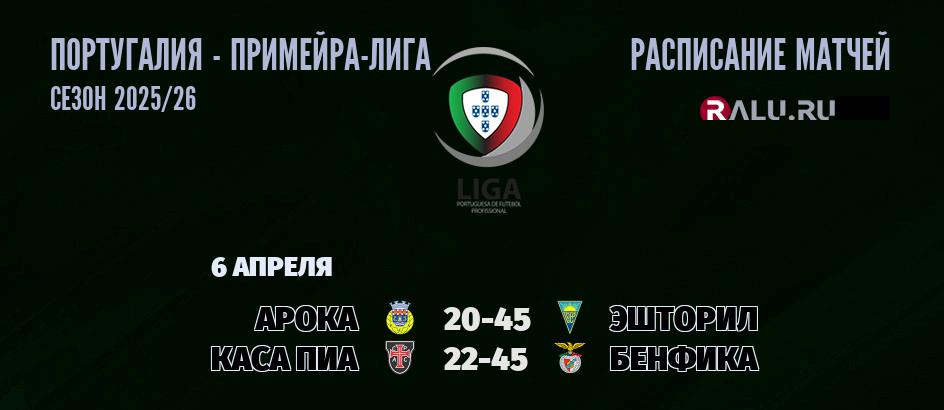 6 апреля 2026 года пройдут две встречи в рамках Примейра-лиги Португалии