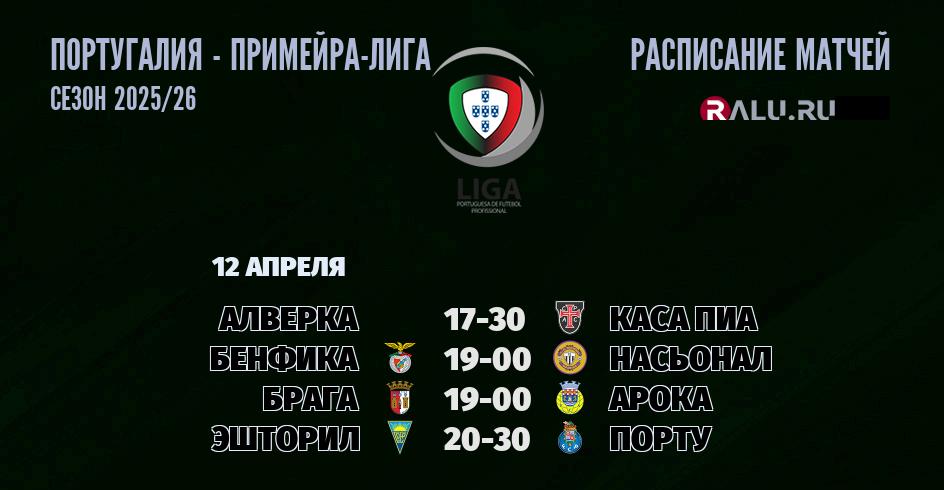 12 апреля 2026 года состоятся четыре матча в рамках Примейра-лиги Португалии