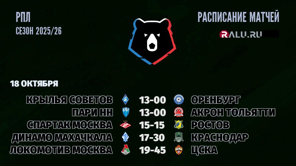 16 октября нет матчей РПЛ, ближайшие матчи состоятся 18 октября: